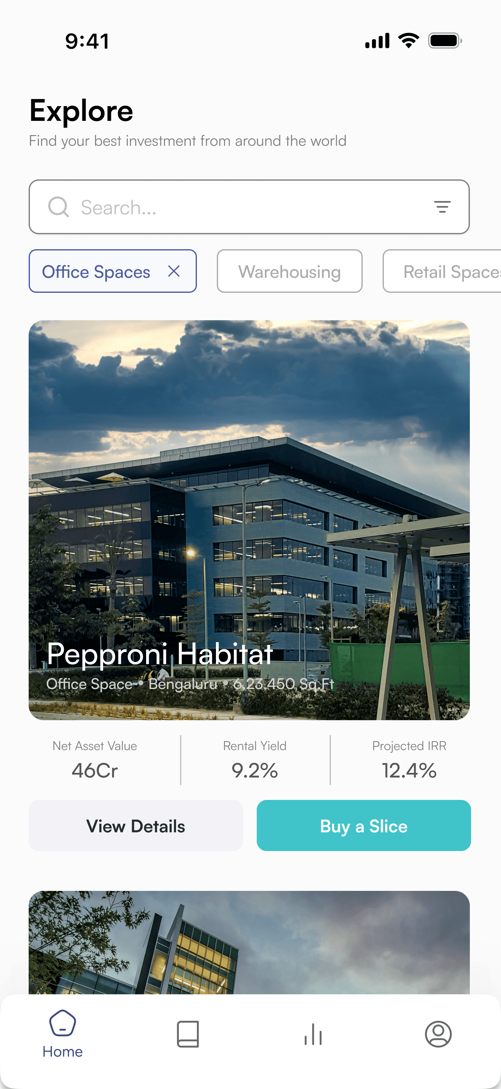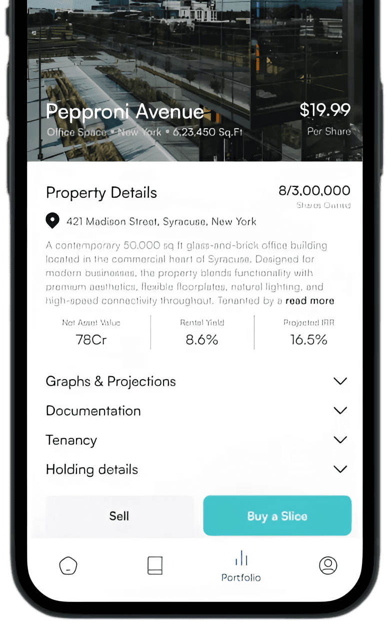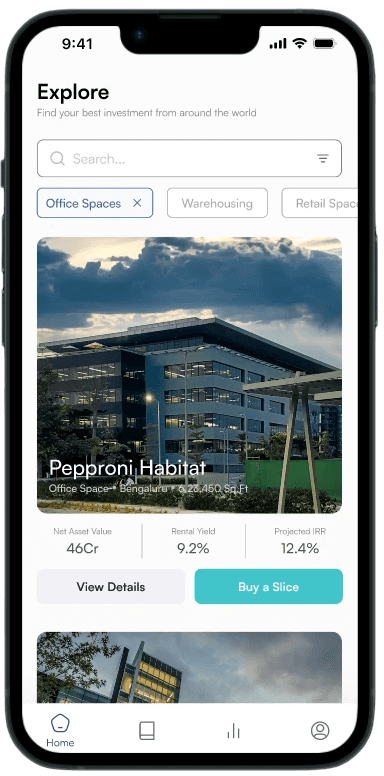 Earn monthly rental income and long-term appreciation by investing in a slice, of RERA approved real estate, without the legal or operational hassle.